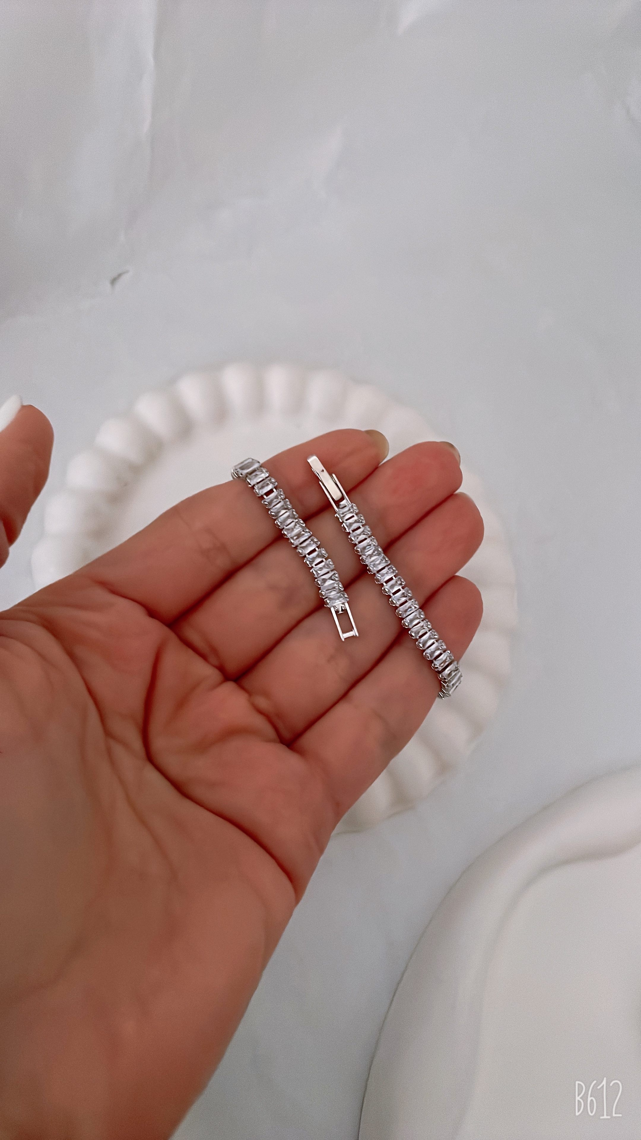 دستبند تنیسی جواهری دخترانه و زنانه مناسب ست با ساعت نگینی