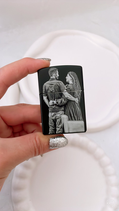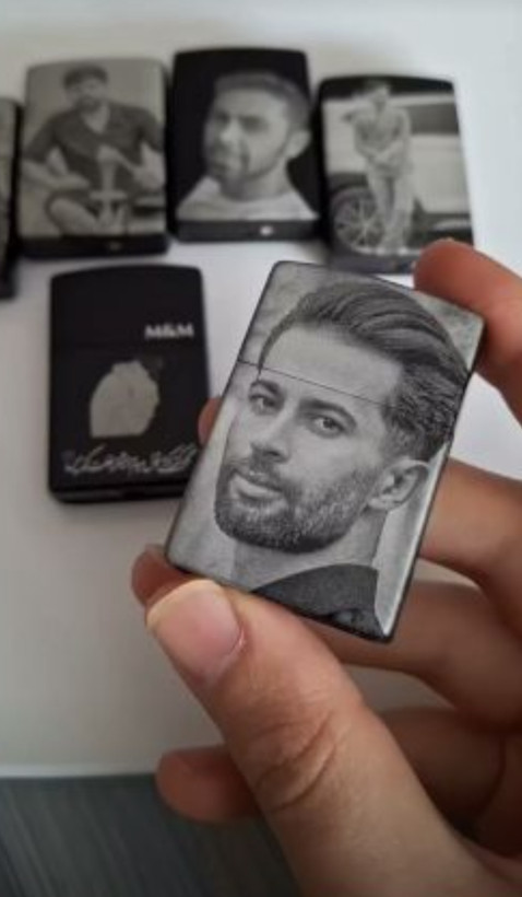 فندک زیپو مشکی حک چهره و متن سفارشی