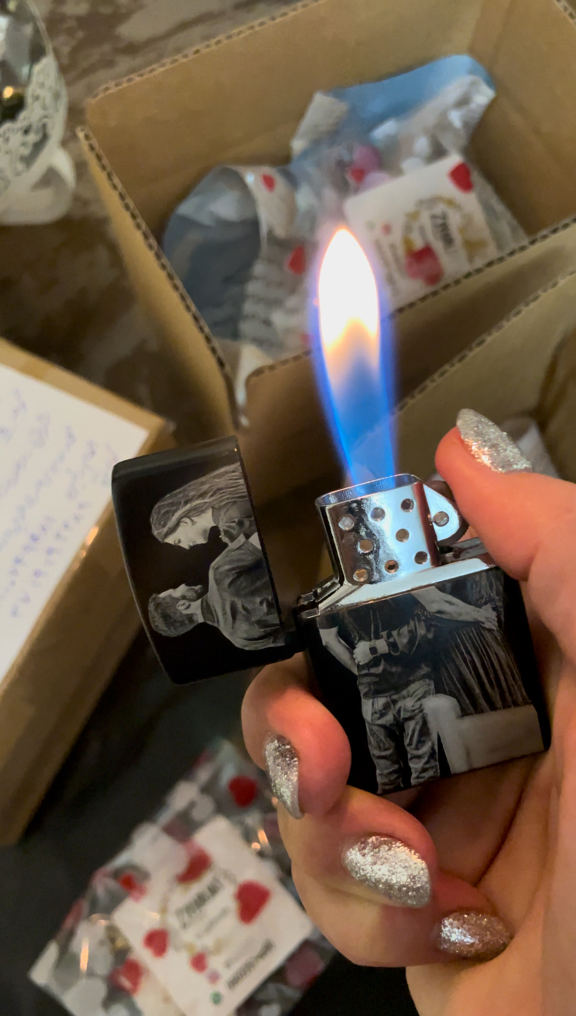 فندک زیپو مشکی حک چهره و متن سفارشی